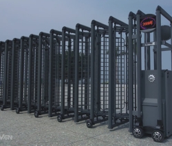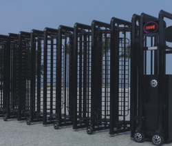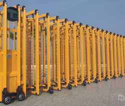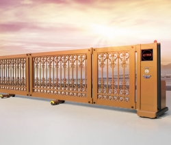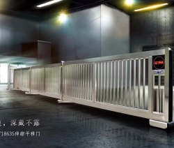 露天的电动伸缩门光泽无限,不易粘尘,不被污染气体腐蚀,门体采用优质不锈钢或铝合金等材料制作,采用平行四边形原理交接,伸缩灵活。